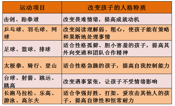 只有先科学测试、评估孩子的人格特质,然后对症下药选择合适的运动项目,并且长期坚持,才能实现孩子人格的良性发展。